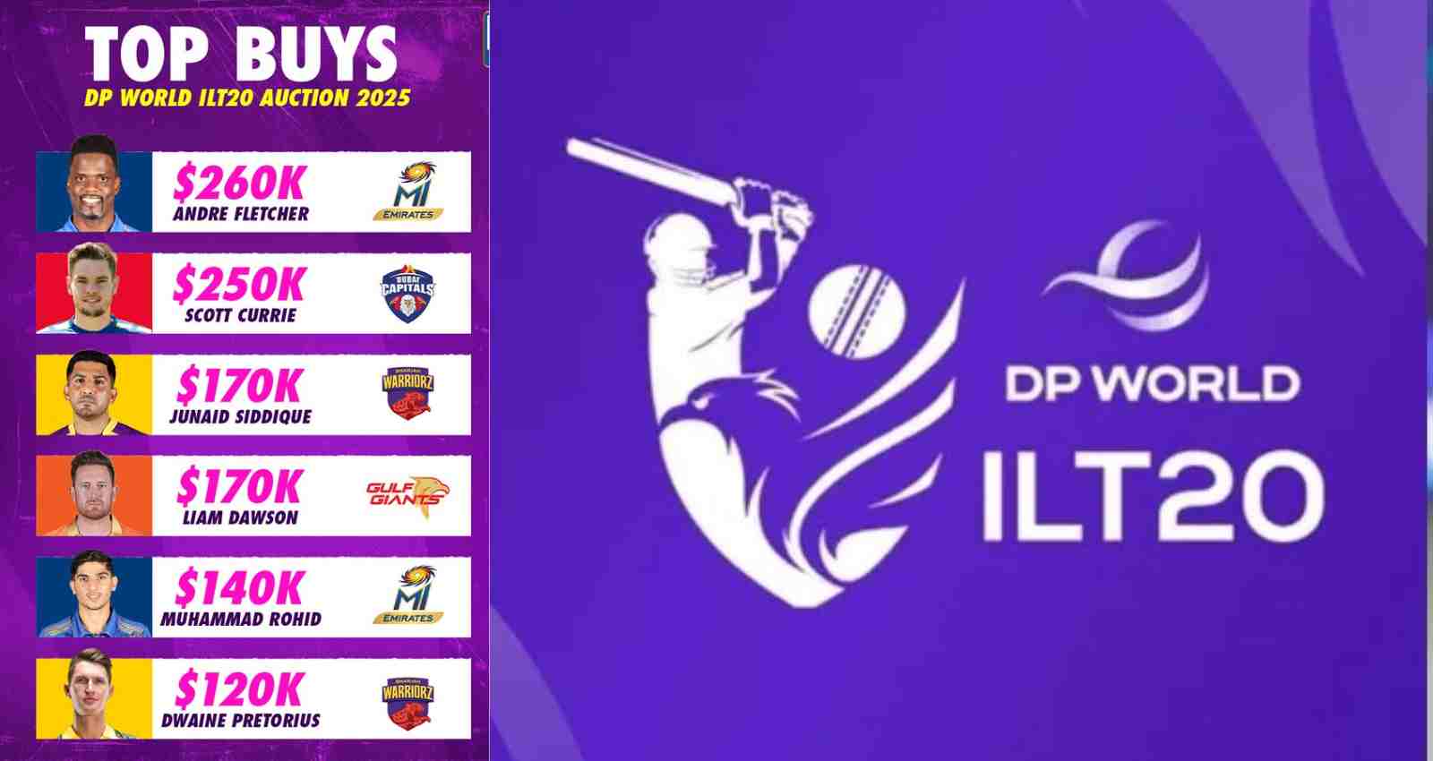 This day also proved historic for UAE players in the ILT20 auction. Sharjah Warriors re-acquired Junaid Siddique for USD 170,000 by using their RTM (Right To Match) card. Similarly, Muhammad Rohid was included in the MI Emirates squad for USD 140,000 through RTM. This move is a milestone for UAE cricket, as it will provide local players with an opportunity to showcase their talent in a major tournament.