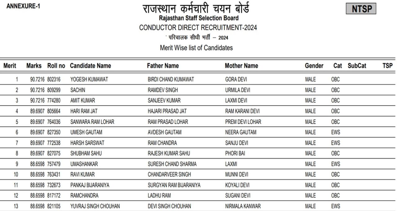 RSSB Conductor Result 2026: राजस्थान कंडक्टर परीक्षा का रिजल्ट जारी, ऐसे करें डाउनलोड