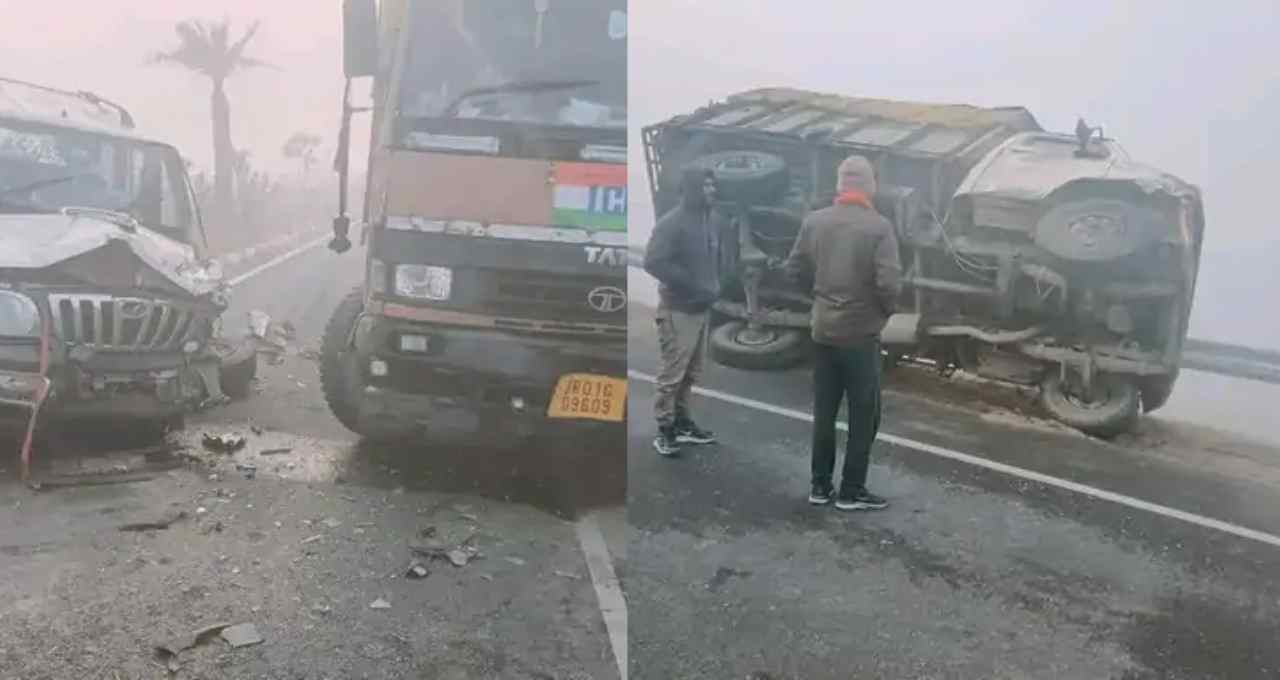 मुजफ्फरपुर में NH-74 पर भी घने कोहरे के कारण दो ट्रकों की आमने-सामने जोरदार टक्कर हुई। दोनों ड्राइवर गंभीर रूप से घायल हुए, जिन्हें JCB की मदद से बाहर निकाला गया।