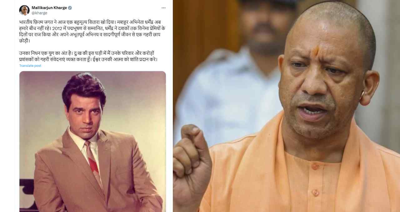 यूपी के मुख्यमंत्री योगी आदित्यनाथ ने धर्मेंद्र के निधन को अत्यंत दुखद और फिल्म जगत की अपूरणीय क्षति बताया। उन्होंने प्रभु श्रीराम से प्रार्थना की कि दिवंगत आत्मा को सद्गति मिले और शोकाकुल परिवार तथा प्रशंसकों को यह दुःख सहने की शक्ति मिले।