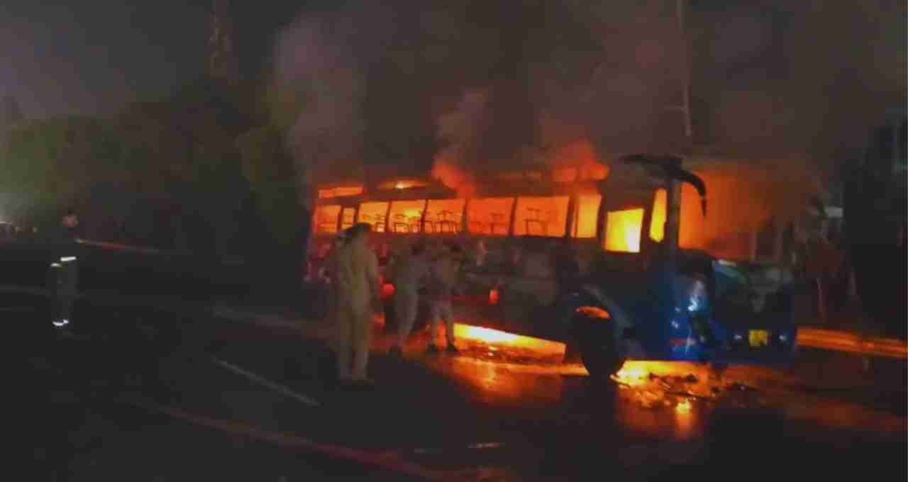 बुलंदशहर में NH-34 पर बस में लगी आग, यात्रियों ने बस से कूदकर बचाई जान