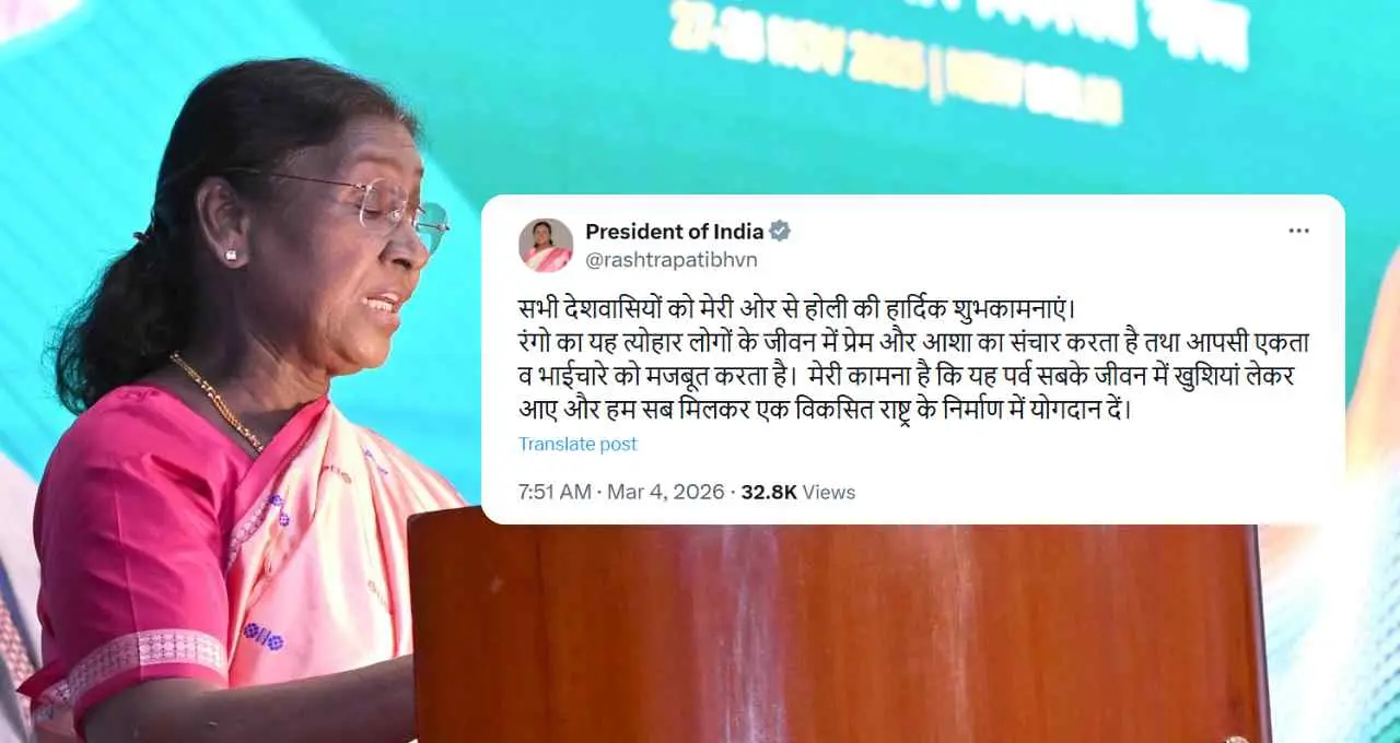 राष्ट्रपति द्रौपदी मुर्मू ने अपने संदेश में कहा कि सभी देशवासियों को उनकी ओर से होली की हार्दिक शुभकामनाएं। उन्होंने कहा कि रंगों का यह त्योहार लोगों के जीवन में प्रेम और आशा का संचार करता है तथा आपसी एकता और भाईचारे को मजबूत बनाता है।