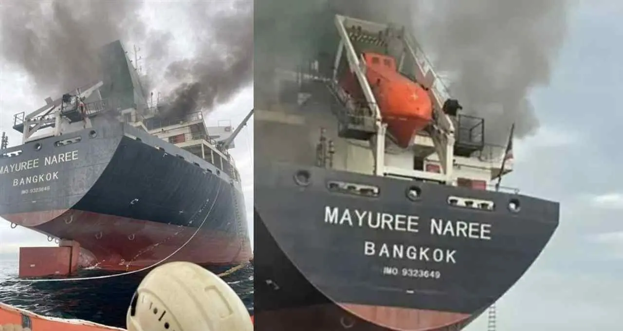 होर्मुज जलडमरूमध्य में भारत की ओर जा रहे थाई मालवाहक पोत 'मयूरी नारी' पर ईरानी मिसाइलों से हमला हुआ। 20 चालक दल के सदस्य बचाए गए, लेकिन 3 सदस्य अभी फंसे हैं। घटना से वैश्विक व्यापार और सुरक्षा पर गंभीर चिंता।