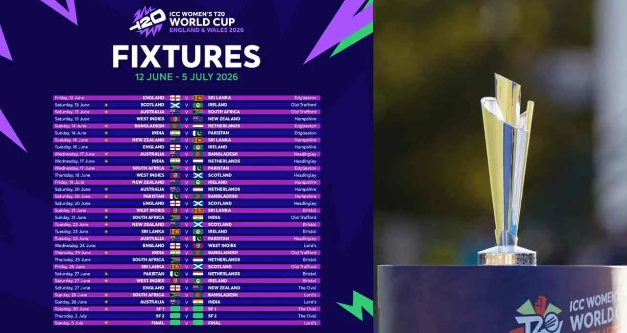 महिला क्रिकेट प्रेमियों के लिए बड़ी खुशखबरी है। ICC ने वूमेन्स T20 वर्ल्ड कप 2026 का पूरा शेड्यूल जारी कर दिया है। इस साल टूर्नामेंट 12 जून से 5 जुलाई तक इंग्लैंड और वेल्स में आयोजित होगा। इस बार कुल 12 टीमों का हिस्सा रहेगा, जिसमें भारत और पाकिस्तान की प्रमुख टीमें शामिल हैं।