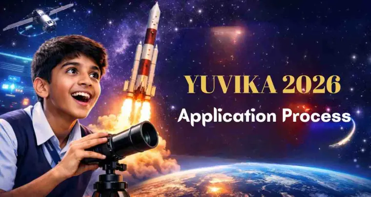 YUVIKA 2026 Application Process: Indian Space Research Organisation ने देशभर के 9वीं कक्षा में अध्ययनरत छात्रों के लिए Young Scientists Programme शुरू किया है। यह कार्यक्रम भारत में विभिन्न इसरो केंद्रों पर आयोजित होगा, जहां चयनित छात्र वैज्ञानिकों के साथ संवाद और प्रयोगशालाओं का दौरा कर सकेंगे। आवेदन प्रक्रिया ऑनलाइन है और पात्रता 1 जनवरी 2026 तक 9वीं कक्षा में नामांकन पर आधारित है। इस पहल का उद्देश्य छात्रों में कम उम्र से ही अंतरिक्ष विज्ञान के प्रति रुचि और समझ विकसित करना है।