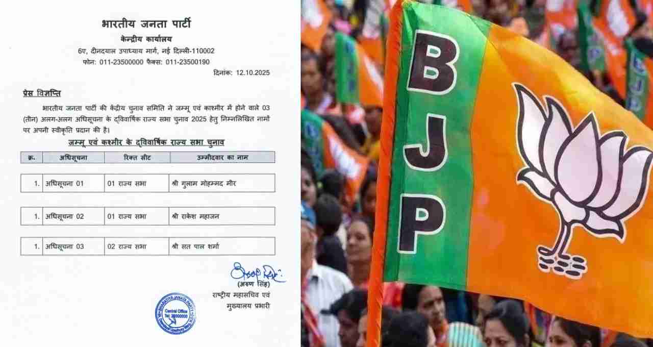 जम्मू-कश्मीर राज्यसभा चुनाव 2025: BJP ने जारी की उम्मीदवारों की लिस्ट, जानें किन नेताओं का नाम है शामिल