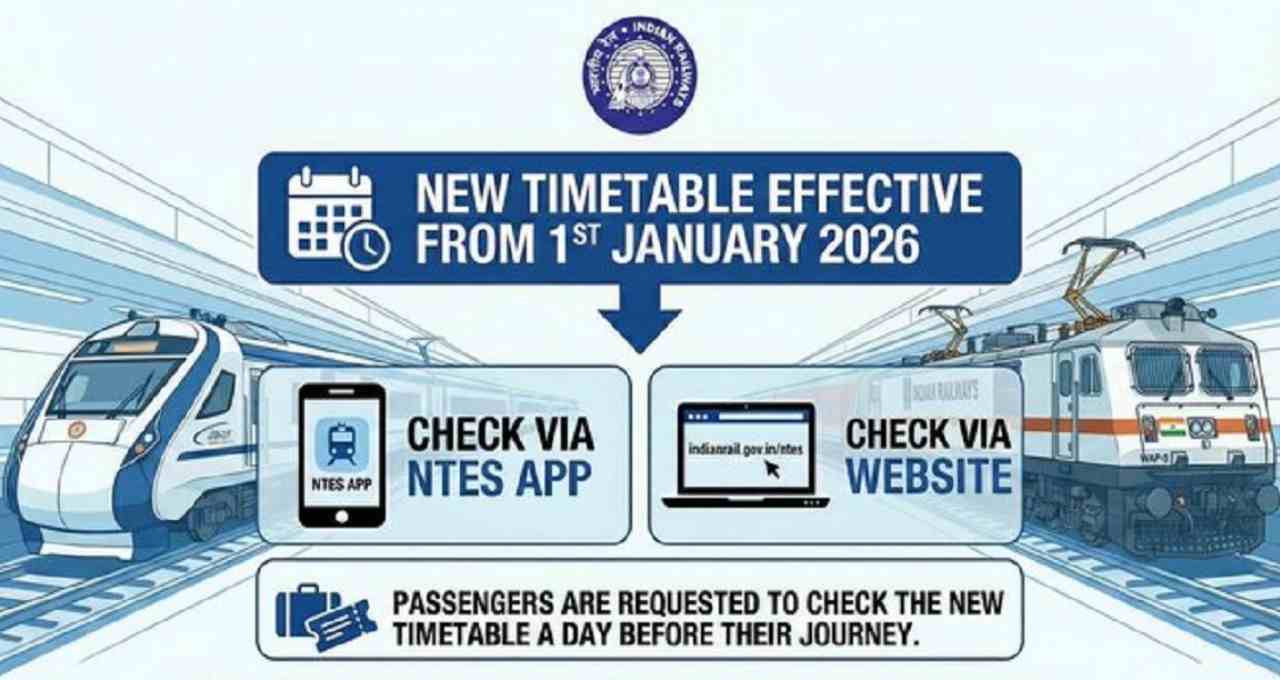 नई ट्रेनें, विस्तार, तेज गति और बेहतर ठहराव से यात्रा अधिक सुगम, तेज और सुखद बनेगी। 1 जनवरी 2026 से लागू होने वाली यह नई समय सारणी लाखों यात्रियों के लिए राहत और सुविधा लेकर आएगी।