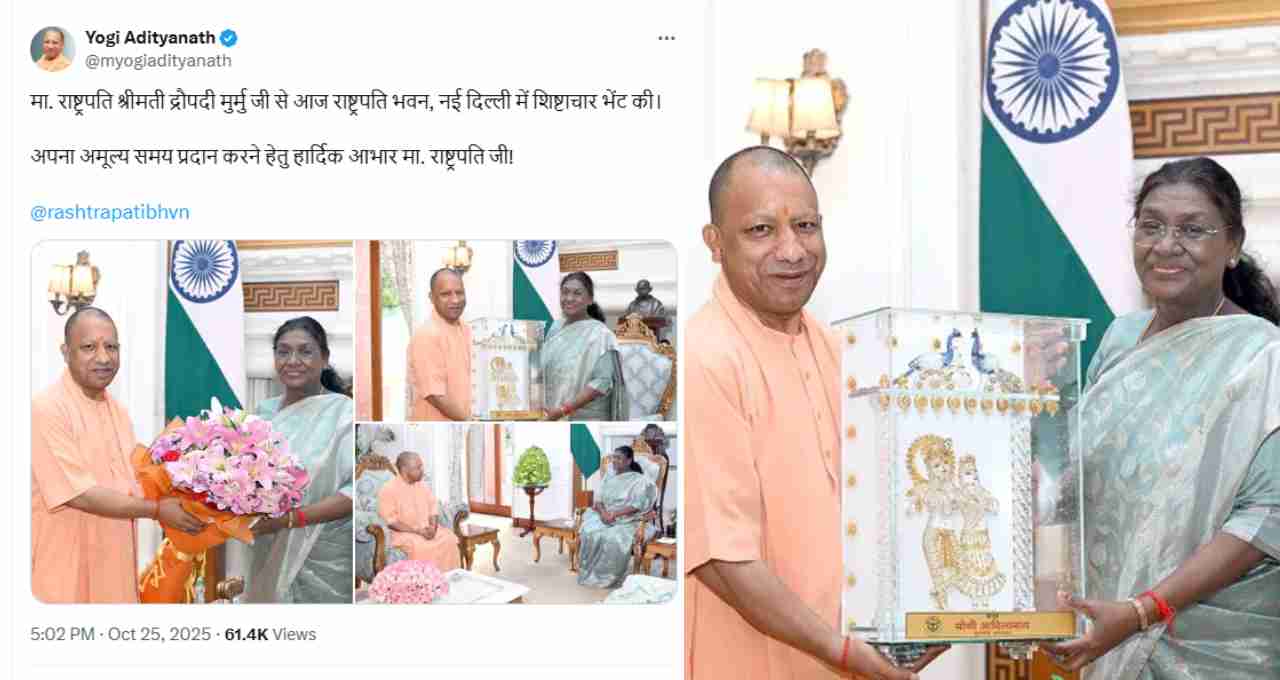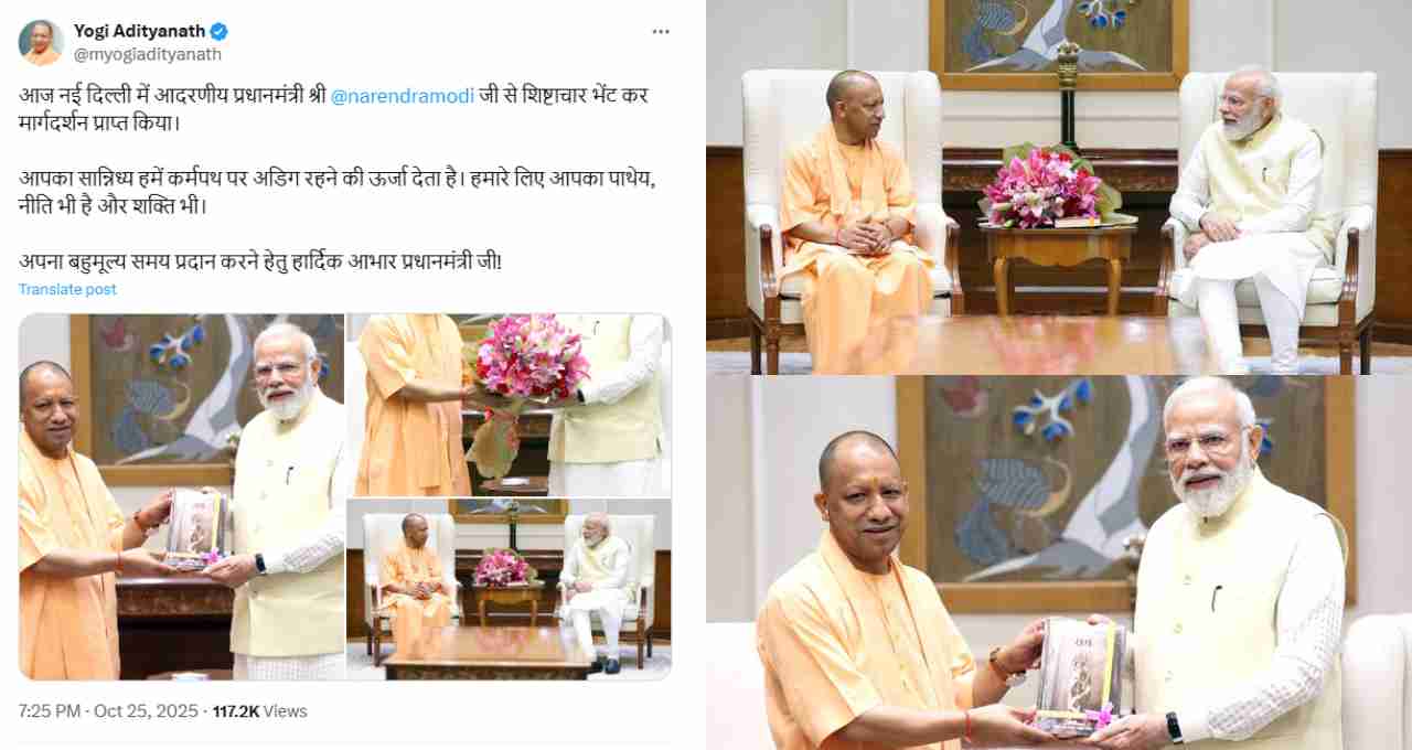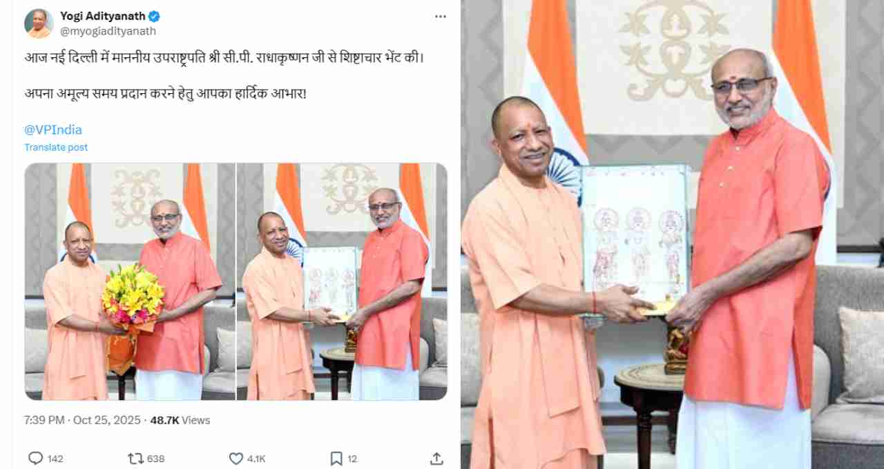 प्रधानमंत्री से मुलाकात के बाद सीएम योगी ने नई दिल्ली में उपराष्ट्रपति सी.पी. राधाकृष्णन से भी बैठक की। उन्होंने उपराष्ट्रपति को उनके समय और मार्गदर्शन के लिए धन्यवाद दिया।
