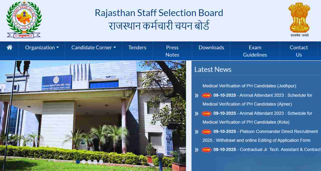 Job: राजस्थान में सरकारी नौकरी की तलाश कर रहे युवाओं के लिए बड़ी खबर सामने आई है। राजस्थान कर्मचारी चयन बोर्ड (RSSB), जयपुर ने आयुष अधिकारी (Ayush Officer) पदों पर भर्ती के लिए नोटिफिकेशन जारी कर दिया है। इस भर्ती के तहत कुल 1535 पदों पर नियुक्ति की जाएगी। इच्छुक और योग्य उम्मीदवार अब 10 अक्टूबर 2025 से ऑनलाइन आवेदन कर सकते हैं। आवेदन की अंतिम तिथि 8 नवंबर 2025 है।
