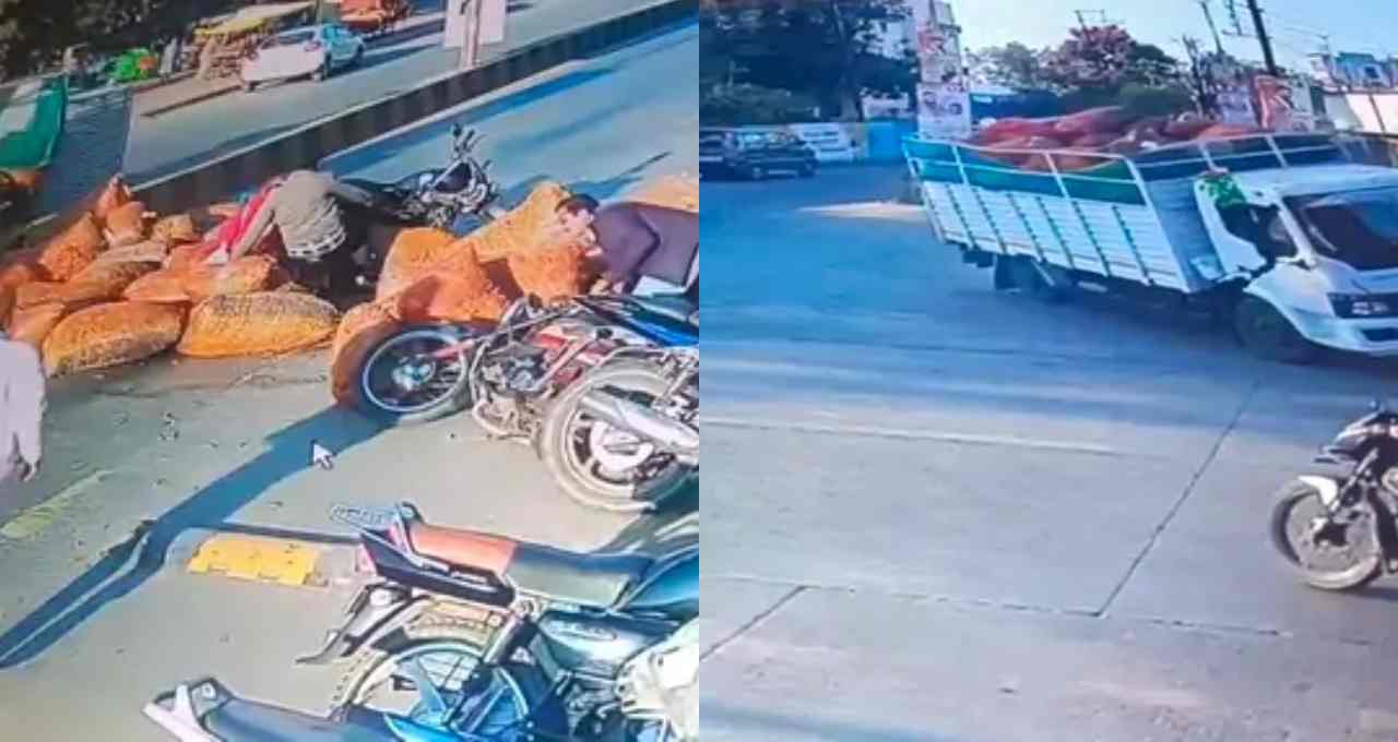 ट्रक के पलटते ही उसमें भरी मटर की बोरियां सड़क पर बिखर गईं। उसी समय सड़क पार कर रहे दो-तीन बाइक सवार बोरियों के नीचे आ गए। राहगीरों और आसपास खड़े लोगों ने तुरंत दौड़कर बोरियां हटाईं और घायल लोगों को बाहर निकाला।