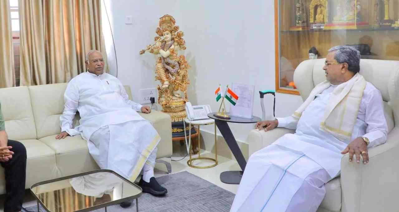 Karnataka Politics: कर्नाटक कांग्रेस में पिछले कई हफ्तों से चल रही नेतृत्व परिवर्तन की चर्चाओं पर आखिरकार विराम लग गया है। मुख्यमंत्री सिद्धारमैया ने कांग्रेस अध्यक्ष मल्लिकार्जुन खरगे से मुलाकात के बाद स्पष्ट कर दिया है कि न तो नेतृत्व बदल रहा है और न ही इस तरह की कोई चर्चा पार्टी स्तर पर हुई है। उन्होंने कहा कि मीडिया में फैल रही ये खबरें सिर्फ अफवाह हैं। मुलाकात के बाद सिद्धारमैया ने साफ कहा कि खरगे ने उन्हें मुख्यमंत्री पद पर बने रहने और राज्य के अगले बजट (Budget) की तैयारी करने का निर्देश दिया है।