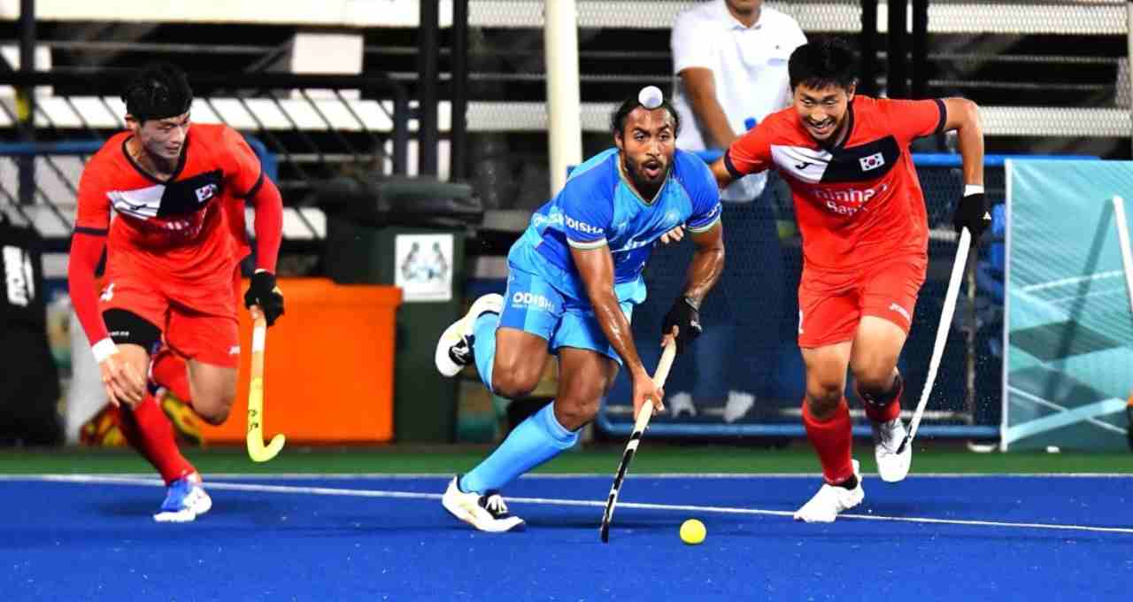 स्पोर्ट्स न्यूज़: भारतीय पुरुष हॉकी टीम ने सुल्तान अजलान शाह कप 2025 में अपने अभियान की शानदार शुरुआत करते हुए कोरिया को 1-0 से हराया। रविवार, 23 नवंबर को मलेशिया के इपोह स्थित सुल्तान अजलान शाह स्टेडियम में खेले गए इस मुकाबले में भारत की ओर से एकमात्र गोल मोहम्मद रहील ने 15वें मिनट में किया, जो टीम की जीत का निर्णायक क्षण बना। शुरुआत से ही भारतीय टीम ने बेहतरीन तालमेल और गेंद पर मजबूत पकड़ बनाए रखी।