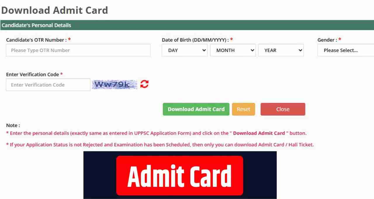 UPPSC PCS Admit Card 2025 को आधिकारिक वेबसाइट uppsc.up.nic.in पर जारी किया गया है। उम्मीदवारों को लॉगिन डिटेल्स जैसे OTR नंबर, डेट ऑफ बर्थ, जेंडर और वेरिफिकेशन कोड दर्ज करके अपने एडमिट कार्ड को डाउनलोड करना होगा। डाउनलोड प्रक्रिया के बाद एडमिट कार्ड स्क्रीन पर दिखाई देगा, जिसे उम्मीदवार प्रिंट या डिजिटल रूप में सुरक्षित रख सकते हैं।
